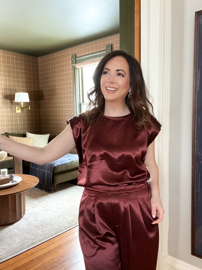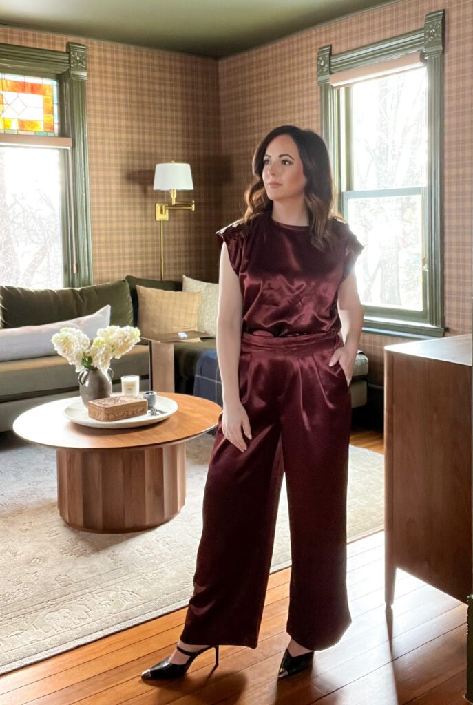 (Outfit Details: Top, Pant, Mule –Similar, Earring)